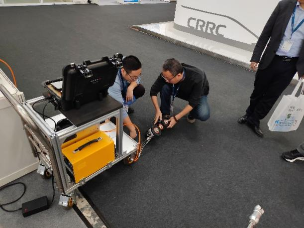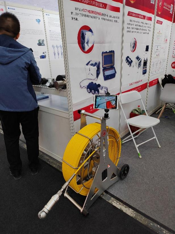此次展會我司展出了最新升級款風(fēng)電葉片內(nèi)窺機(jī)器人和最新研發(fā)的風(fēng)電小空間檢測設(shè)備。