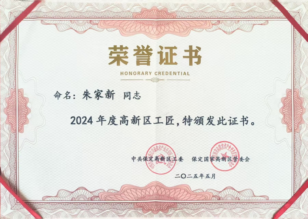 熱烈祝賀!我司朱家新榮獲“高新區工匠”稱號