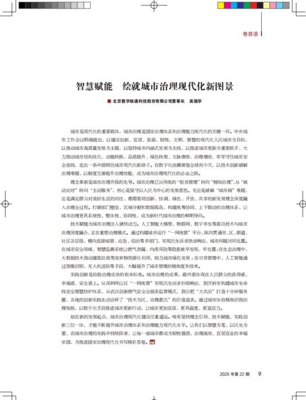 數字政通董事長吳強華:智慧賦能 繪就城市治理現代化新圖景