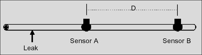 兩個傳感器被分別放置在A和B處,且漏點距離閥門A較近。