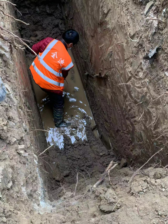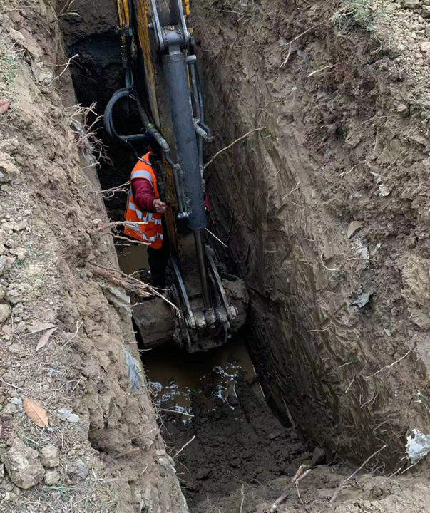 動聲源探測法和挖掘機相結合的方式來準確找到燃氣PE管道位置。