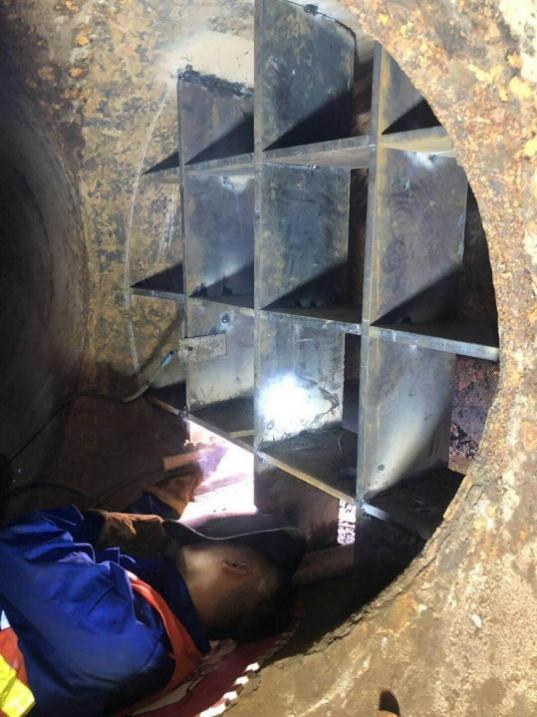內(nèi)盲板一般多用于臨時(shí)封堵時(shí)使用,主要是在管道維修閉水、管道封堵試壓時(shí)使用。內(nèi)盲板為了方便安裝,一般都會(huì)采用2.5cm厚度以下鋼制板材使用。如果管道壓力過高,在盲板焊接時(shí)還會(huì)對(duì)盲板采用焊接加強(qiáng)筋的方式進(jìn)行加強(qiáng)焊接,以保證盲板在使用時(shí)的安全可靠性。加強(qiáng)筋的多少和使用材料的厚度要根據(jù)管道的最高運(yùn)行壓力所產(chǎn)生的推力來確定。當(dāng)管道維修或試壓結(jié)束后再將盲板進(jìn)行切除,并將管壁殘留物清理干凈,確保管道暢通。